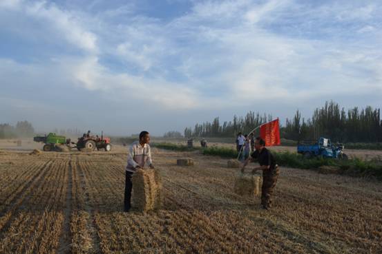 又是一年丰收的季节。新疆艺术学院驻阿其克乡五村工作队正在田地里忙得不亦乐乎,人声、机器声此起彼伏。6月17日,该村成立了以学院党委常委、纪委书记吾甫尔·如苏力为队长的夏收志愿服务队。