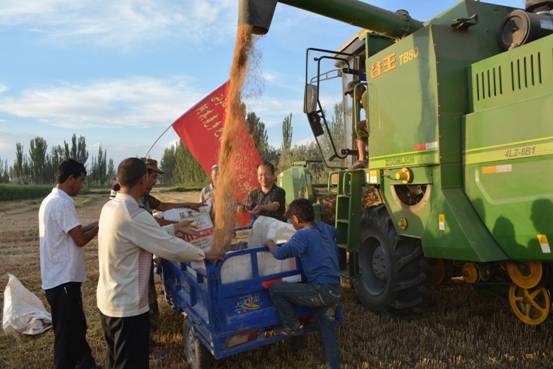 村第一书记吾甫尔·如苏力带领志愿服务队帮助村民收割小麦